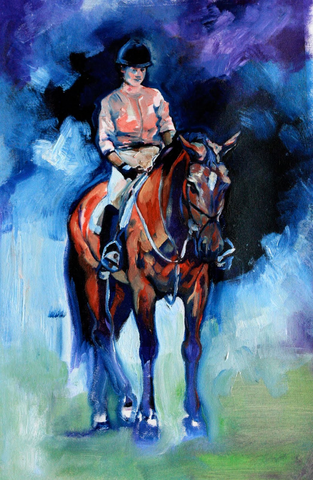 It does, however, give me an excuse to pull open my heavy filing cabinet drawers, grab a handful of pictures, and dream. Here’s a painting, and here’s a painting, and here’s an etching, a drawing, a watercolor. In my hands I hold the promise of so much great art! Magical moments where the light and shadow have come together with the action and the sentiment and the pure equine form – and somewhere buried in all of that is exactly what I’m trying to say with my paintings and drawings. Look at this creature, this thing, this miracle, this wild, four legged spirit partnered with man to do amazing and athletic things. Look at him jump and race and run. Look at him cut cattle or execute a canter pirouette. Look at him safely cart children around the field or step into the show ring before thousands of spectators in a world class competitive setting. And look at the relationship forged between man and beast. We can guide a half ton animal around with a piece of leather. We can ask him to jump over 5′ fences. We can watch him separate cattle from the herd or chase a ball around while his rider swings a large stick in the air. We can put him in a starting gate, throw the doors open, and expect him to fly down a dirt track, striving to vanquish every other horse on the field.