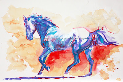 It’s 1:00 in the morning, and I have been roused from my bed by a haunting vision of two Belgian mares standing in a meadow. Seriously. These two mares were the subject of a photo shoot back in the spring of 2010, and one of the bargains struck with the owner (before he allowed me to go slogging in knee high mud through his fields) was that I would send him a print of one of the paintings I would create featuring his two lovely horses. “Tempest” was actually inspired by this photo shoot – although it looks nothing like a calm, placid 15 year old Belgian mare contentedly nibbling at her hay. I hesitate to send him a print of one of his mares looking like a wild beastie from a Walter Farley novel.